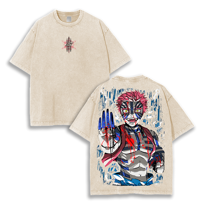 Akaza x Kimetsu no Yaiba Demon Slayer Washed T-Shirt