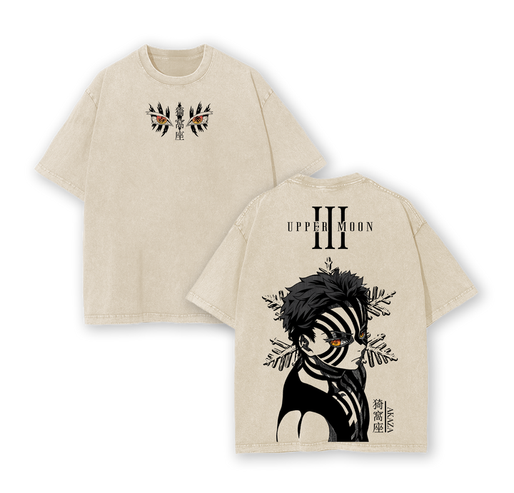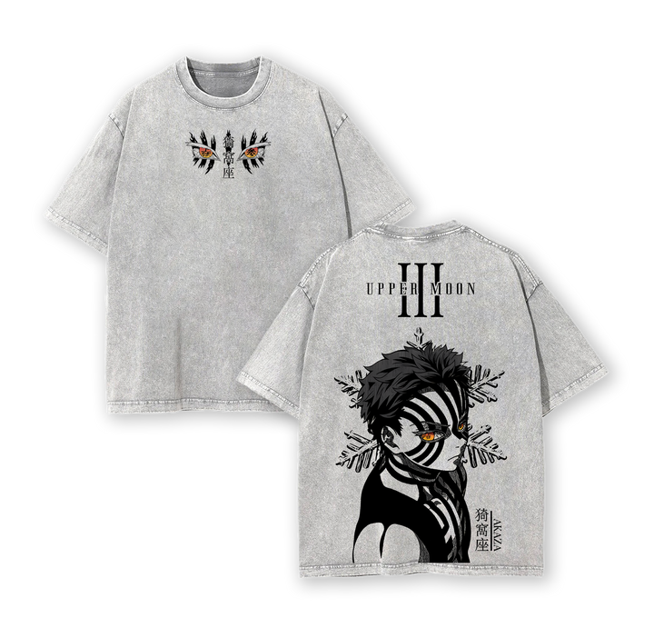 ''Upper Rank 3'' Akaza Graphic Tee - Demon Slayer Washed T-Shirt